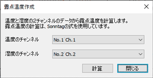 記録データの温度・湿度をもとに、露点温度(結露する温度)のデータを作成することができます。